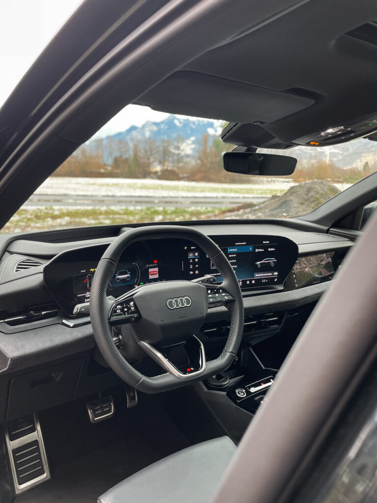En matière de conduite, le Q6 brille par son confort. La direction est agréable et bien dosée pour un SUV électrique, et la suspension pneumatique permet de dompter les irrégularités de la route avec une grande douceur. À 380 chevaux, la version essayée est puissante sans être un foudre de guerre au vu de son poids élevé. Elle privilégie la tranquillité de conduite, offrant une expérience agréable mais sans passion. De toute manière, ce n’est pas ce qu’on lui demande, les amateurs de sensations fortes se tourneront plutôt vers une e-tron GT, ou peut-être la version SQ6. Enfin, l’autonomie satisfaisante et les technologies d’assistance renforcent son attractivité pour les longs trajets.
