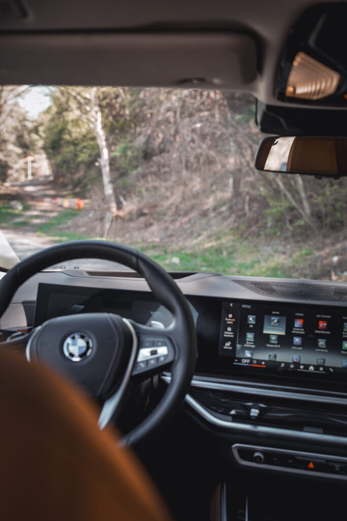 Nous avons pris le volant du X5 xDrive50e équipé du six-cylindres en ligne assistés d’un moteur électrique pour une puissance totale de 483 chevaux. Le SUV se veut réactif et linéraire, et le six en ligne est un régal. Attention toutefois à ne pas se faire surprendre par le poids de la bête qui devient très handicapant d’une fois la batterie vide – autant sur la consommation que du point de vue du comportement routier. Le roulis est maîtrisé, même si un peu plus de fermeté aurait été appréciée, surtout en mode sport. C’est là qu’il se montre le plus dynamique, mais cela ne le transforme pas en voiture de sport pour autant. Ce n’est d’ailleurs pas ce qu’on lui demande. On aime plutot profiter de son confort royal et de la qualité de son intérieur. C’est indéniablement un véhicule conçu pour voyager, et sur ce point, nous ne lui avons trouvé quasiment aucun défaut.