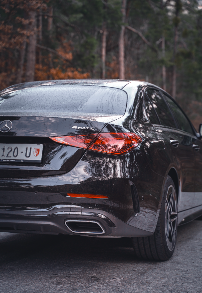 Le design extérieur de la Classe C est indéniablement élégant. Chaque ligne semble pensée pour souligner son caractère dynamique, tandis que ses proportions équilibrées lui confèrent une présence imposante sur la route. La calandre emblématique de Mercedes, encadrée par des phares LED effilés, lui donne une aura de prestige et de sophistication. En résumé, c’est une petite Classe S.