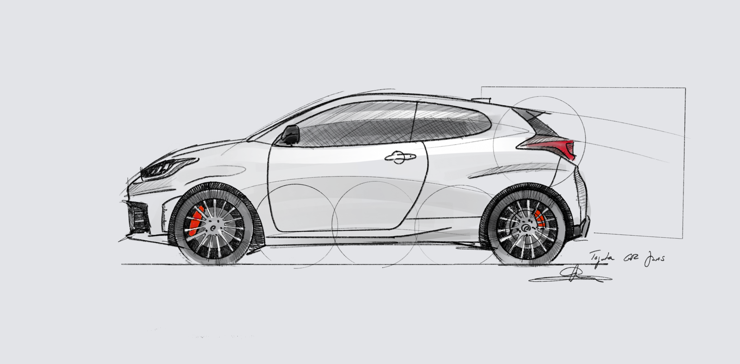 La GR Yaris ne cherche pas à être jolie. Elle cherche à être efficace. Voies élargies, trois portes seulement, ligne de toit abaissée, bandeau lumineux arrière, aileron proéminent, énormes prises d’air, toit en carbone. Chaque élément a une raison d’être. Et pourtant, le dessin est équilibré et elle attire l’oeil.